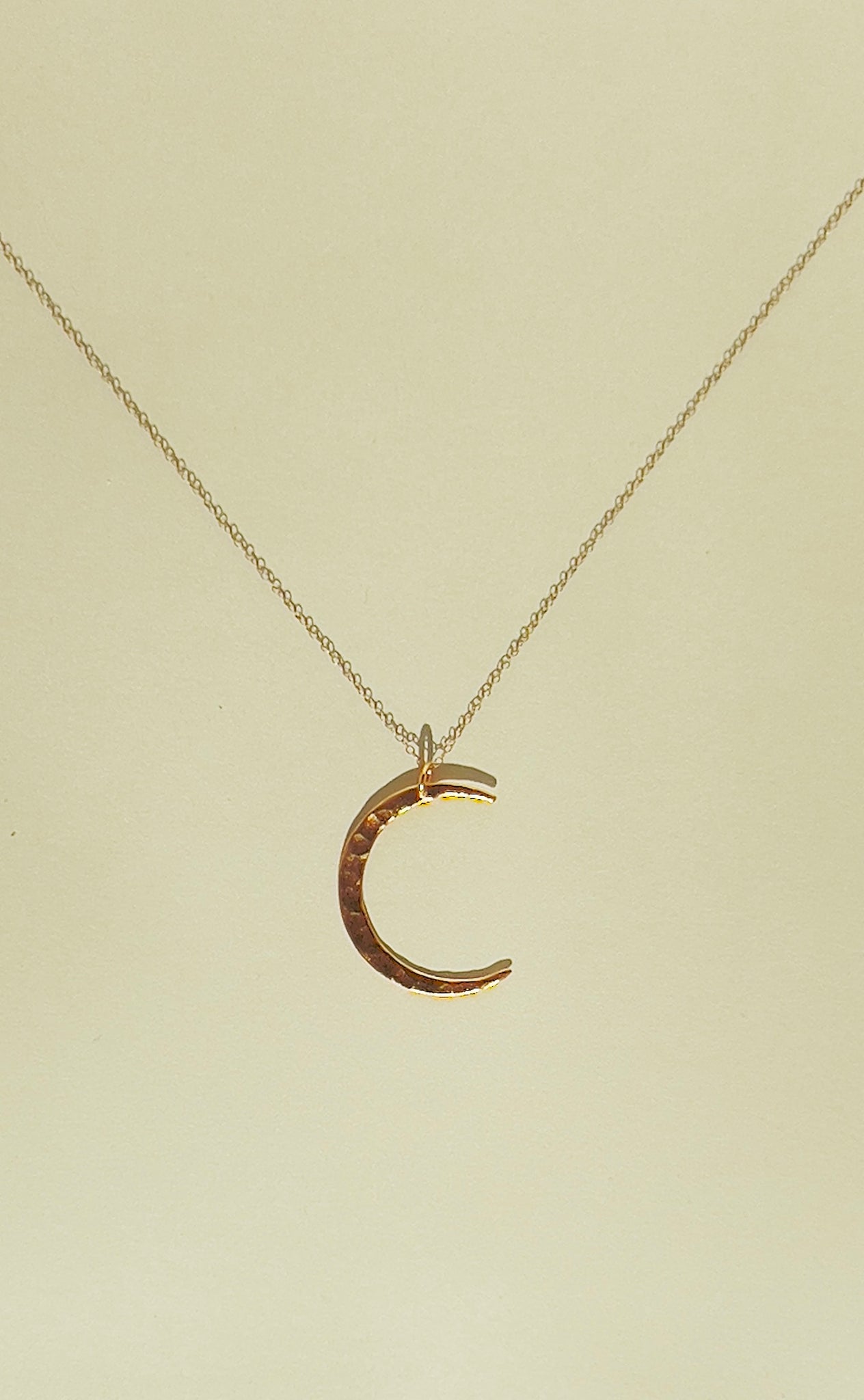 24K Heavy Yellow Gold-Plated Sterling Silver Hammered Crescent Moon Pendant