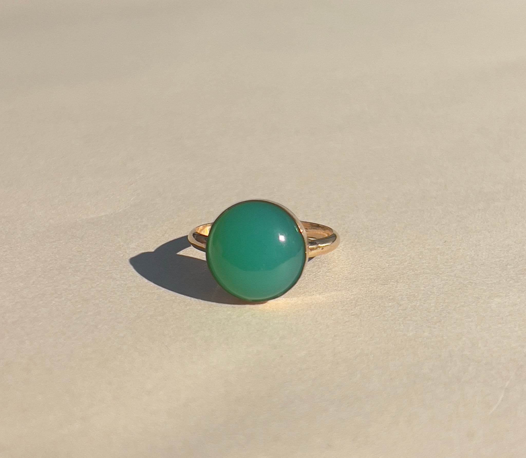 Green Round Chrysoprase Chalcedony Gold Ring
